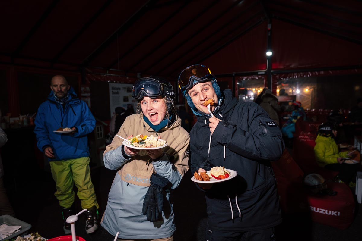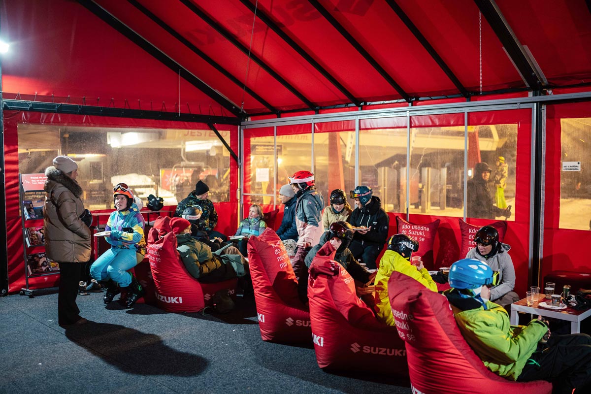 Zahřátí, odpočinek a doplnění energie zajistil stan Suzuki s dobrým jídlem a teplými nápoji, který po celý víkend navozoval pravou après-ski atmosféru. Účastníci si zároveň mohli zblízka prohlédnout i novinku od Suzuki v podobě elektrické Vitary.